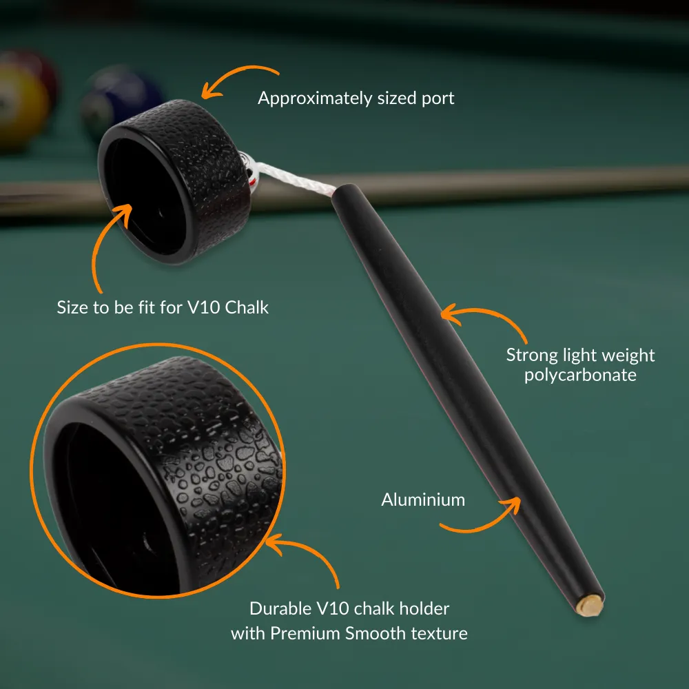 The holder’s compact, cylindrical design fits comfortably in your pocket or cue case, making it easy to carry around between matches. Whether you’re using standard square chalk or a premium cube like Taom V10, this holder keeps it protected from moisture and chipping.